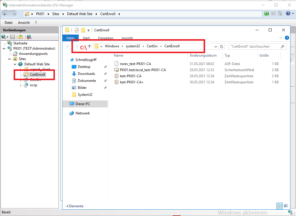 es wäre ggf. auch denkbar die Zertifikate gleich in den Ordner C:\inetpub\wwwroot zu schmeißen.