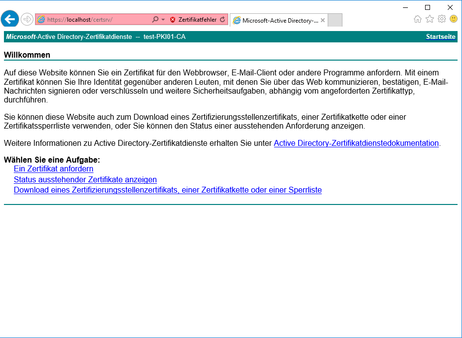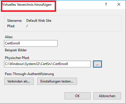 generell verwende ich die „Einfache Webfreigabe“ der CA nur für den CertEnroll.