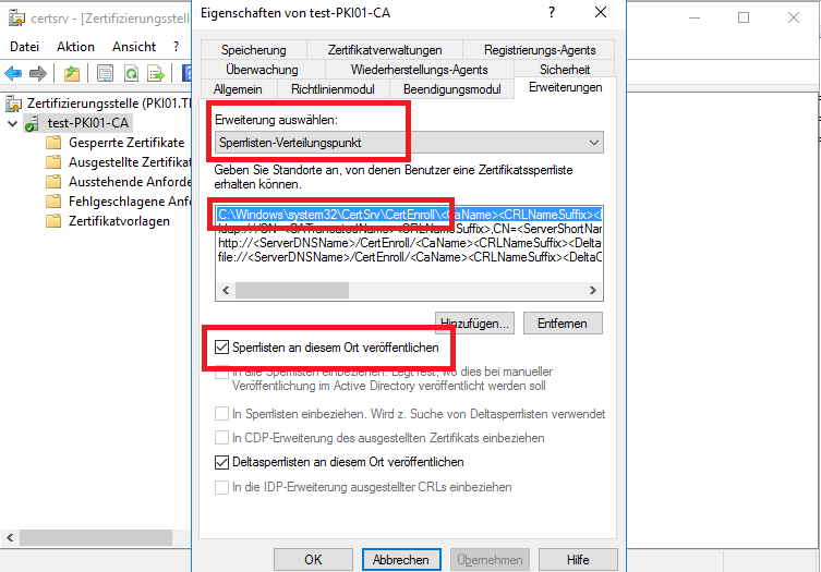 In Abbildung 3 sieht man, dass die CA Zertifikate auch mehrere Verteilungspunkte unterstützt,