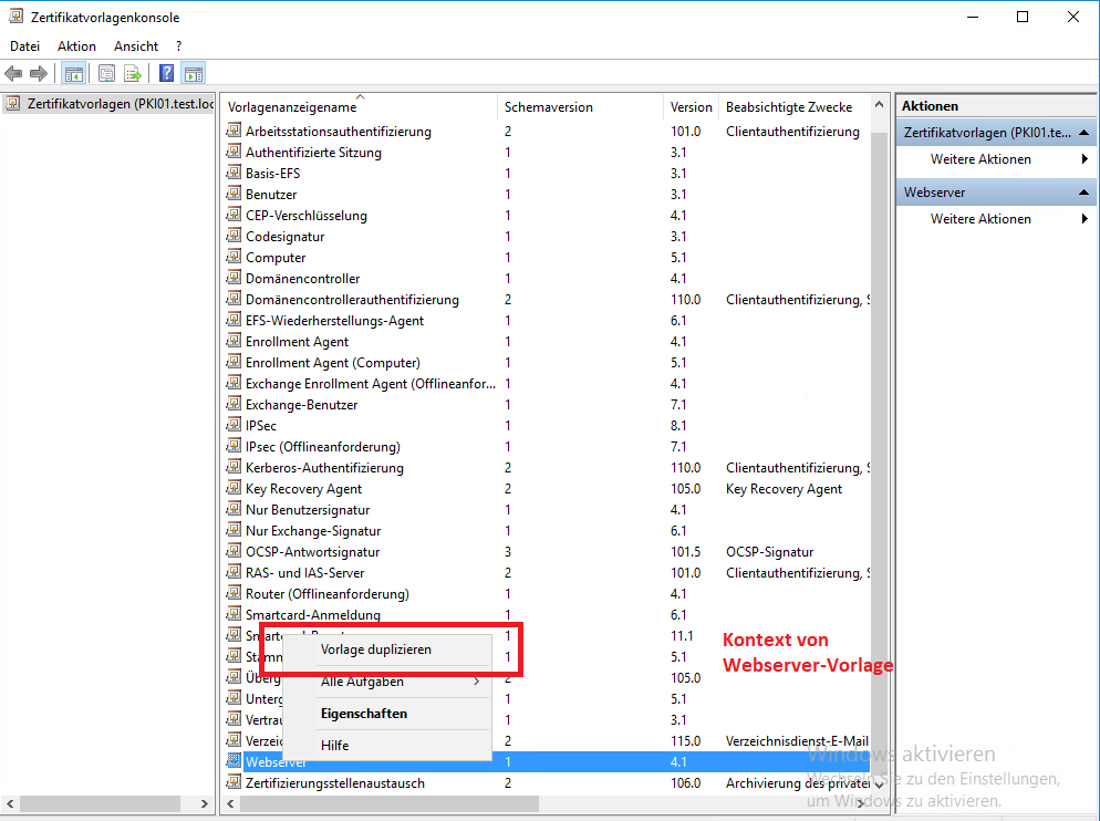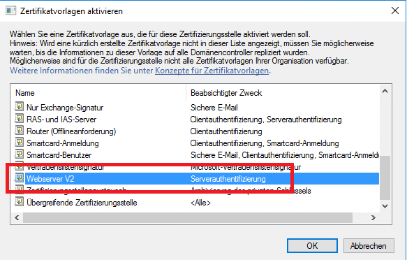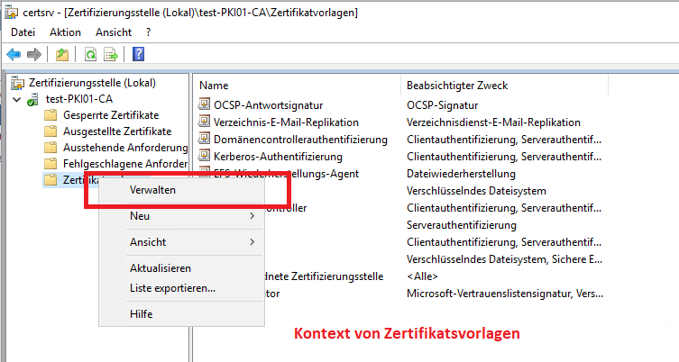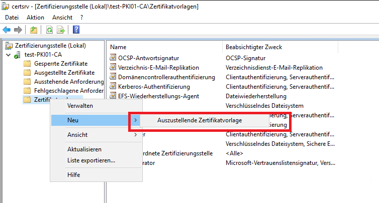 1. Zertifikatsvorlage anpassen/freigeben (sie befinden sich hier)