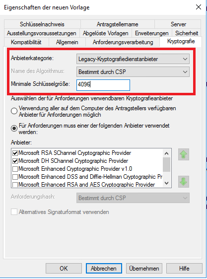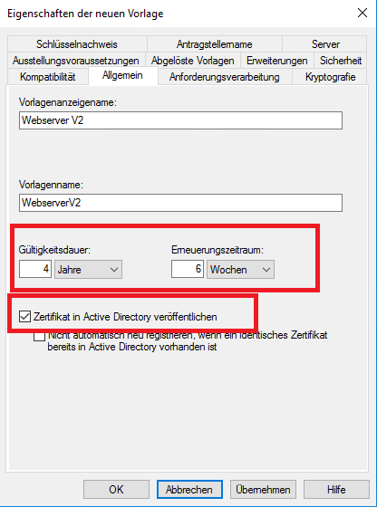 in diesem Beitrag geht es darum, die Vorlage für ein Webserver-Zertifikat mit eigenen Einstellungen zu erweitern.