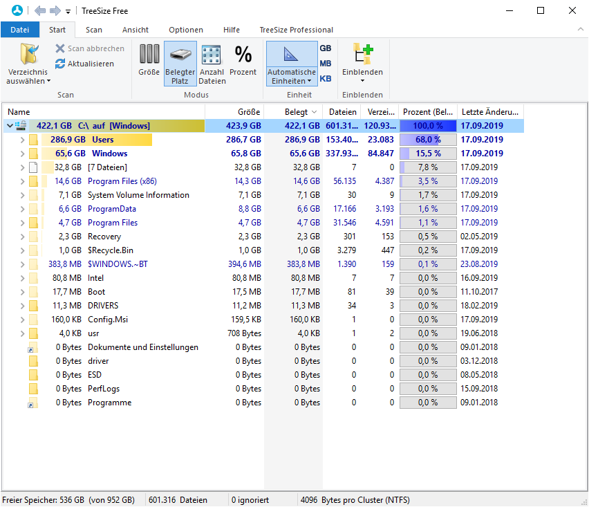 Treesize – Tool zum Analysieren des Speicherbedarfs